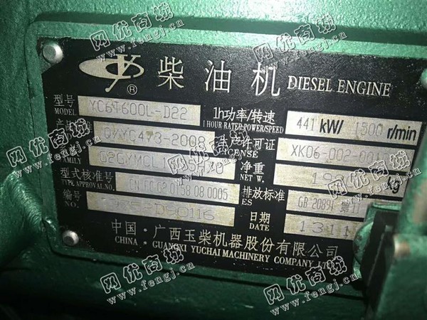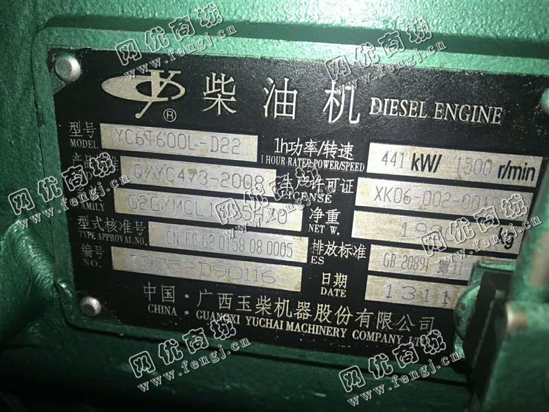出售玉柴440KW发电机组 1.品质量完好,精度好,7-8成新,机器能够正常运行,附件无损坏,安装能用,无需维修。 2.买方负责运费及拆装装车费,卖方需提供现场试车环境,卖方不开票,只可现金交易 .