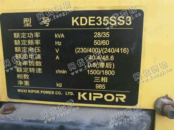 20000元(单价)出售一台KDE35SS3二手发电机组,机器为无锡开普动力有限公司生产,无锡开普发电机组是8成新、在位停用的机器,使用过程中无改装、无大修。目前发电机组位于浙江仓库存放,有意者电话联系。