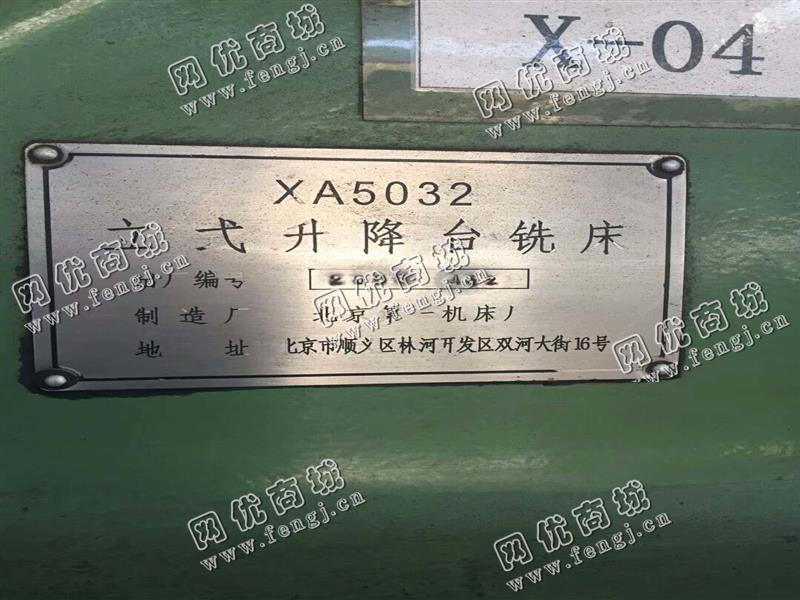 50000元(单价)出售1台XA5032立式升降台铣床,机器为北京一机床厂生产,立式升降台铣床是8成新、正常使用的机器,使用过程中无改装、无大修。目前立式升降台铣床位于安徽仓库存放,有意者电话联系。