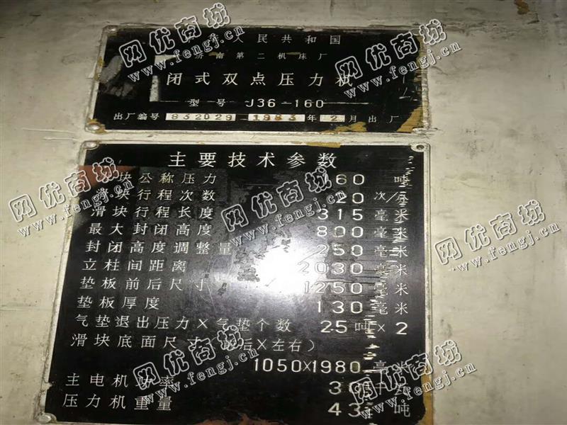 二手设备中介 >> 机床 >> 出售1台J36-160闭式双点压力机