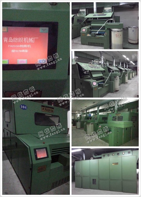 供大厂设备青岛宏大203A清梳联。1-10一机两线。FA009往复抓包机,FA241梳棉风机,FA106A单轴流开棉机,FA029多仓混棉机,FA156除微尘,F116主除杂机。梳棉机青岛宏大FA203A带振动气压棉箱台自调匀整,活机成色非常新。