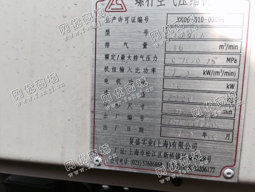 55000.00元(单价)出售2台16立方7.5工斤复盛空压机机器为生产,复盛空压机是7成新、在位停用的机器,使用过程中有改装、有大修。目前空压机位于浙江台州仓库存放,可以现场验货,有意者电话联系。