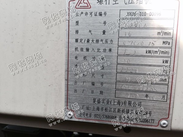二手设备中介 >> 通用机械 >> 旧压缩机 >> 出售2台16立方7.5工斤复盛空压机