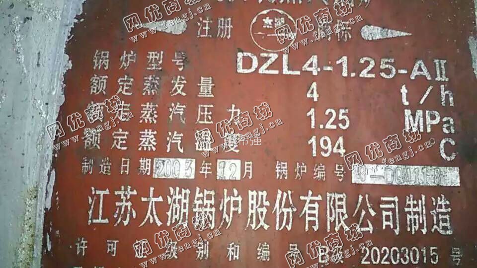 出售二手2003年12月太湖4吨蒸汽锅炉2台