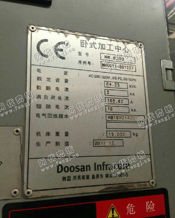 700000.00元(单价)出售12年二手斗山630mm*630mm双工位加工设备机器为生产,斗山加工重型是、在位停用的机器,使用过程中无改装、无大修。目前加工重型位于湖南长沙仓库存放,可以现场验货,有意者电话联系。