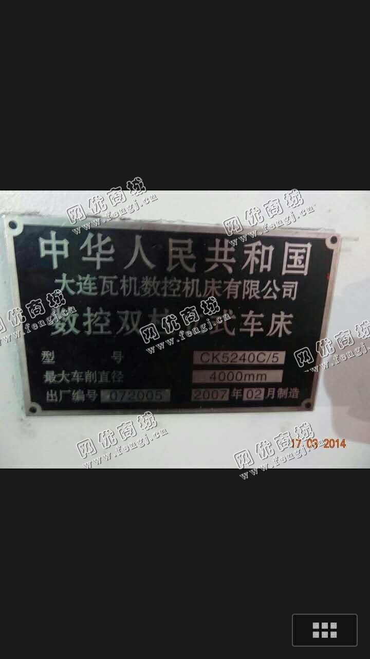 53000.00元(单价)出售四米数控立车ck5240机器为大连瓦机数控机床生产,大连瓦机数控立车是7成新、在位停用的机器,使用过程中有改装、有大修。目前数控立车位于辽宁大连仓库存放,可以现场验货,有意者电话联系。