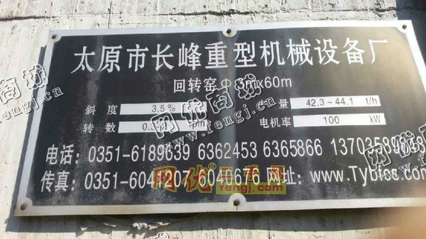 832000.00元(单价)出售二手3*60米轴承回转窑机器为生产,轴承回转窑是5成新、在位停用的机器,使用过程中无改装、无大修。目前轴承回转窑位于陕西西安仓库存放,可以现场验货,有意者电话联系。