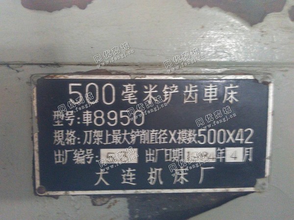 110000.00元(单价)出售1台500毫米8950的产齿车床机器为大连机床厂生产,铲齿车床是7成新、在位停用的机器,使用过程中有改装、有大修。目前产齿车床位于上海宝山区仓库存放,可以现场验货,有意者电话联系。