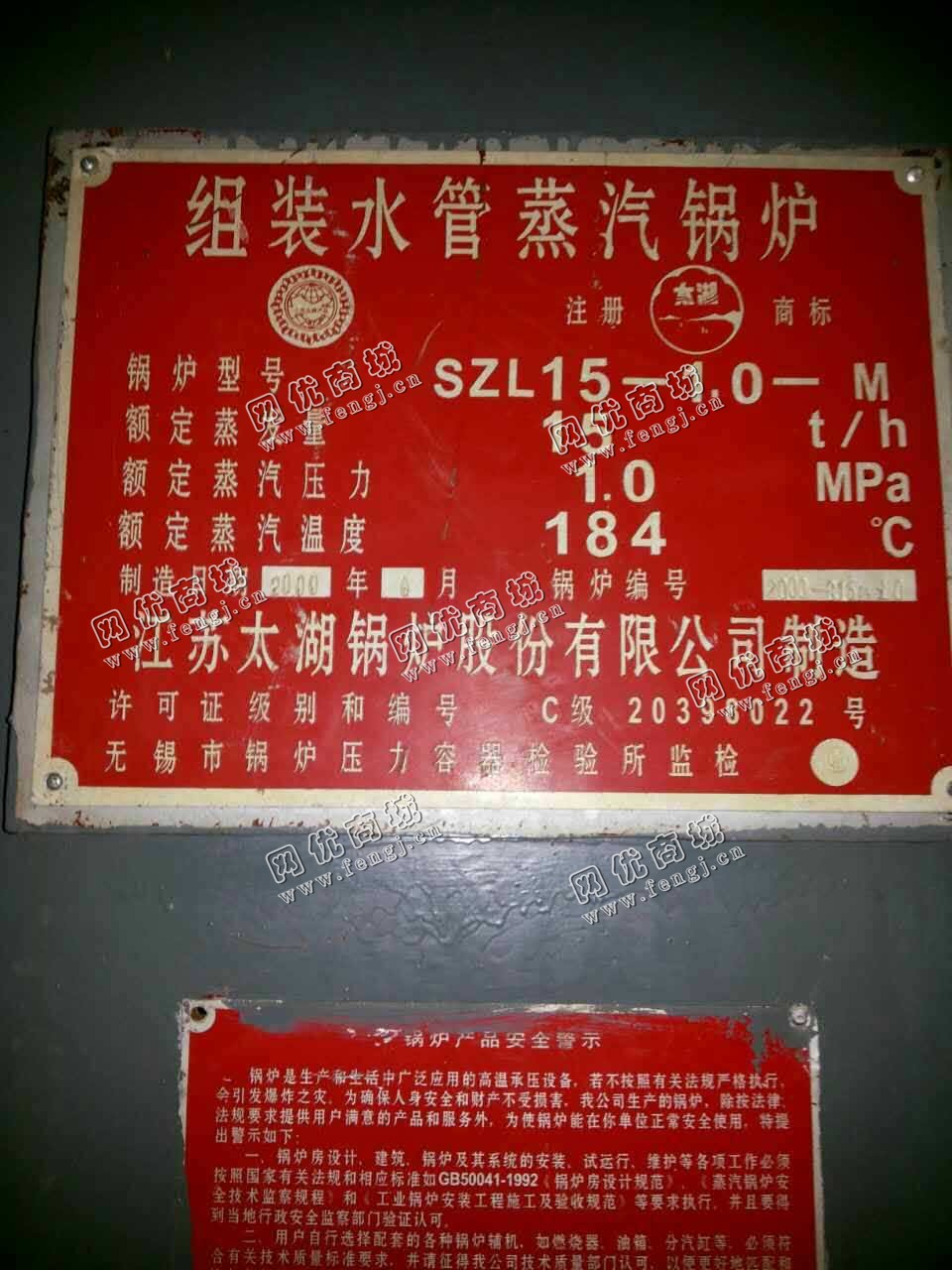 280000.00元(单价)出售15吨生物质蒸汽锅炉机器为江苏太湖锅炉制造厂生产,太湖锅炉是9成新、正常使用的机器,使用过程中无改装、无大修。目前锅炉位于山西太原仓库存放,可以现场验货,有意者电话联系。