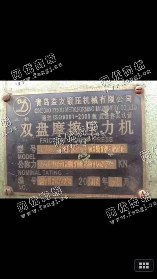 50000.00元(单价)出售3台1600双盘磨擦压力机机器为青岛益友锻压机床有限公司生产,磨擦压力机是7成新、在位停用的机器,使用过程中有改装、有大修。目前磨擦压力机位于浙江金华仓库存放,可以现场验货,有意者电话联系。