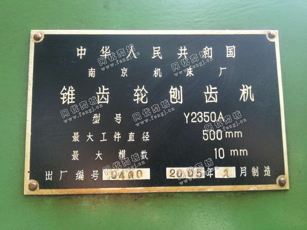 100000.00元(单价)出售1台Y2350A锥齿轮刨齿机机器为南京机床厂生产,刨齿机是7成新、在位停用的机器,使用过程中有改装、有大修。目前刨齿机位于江苏盐城仓库存放,可以现场验货,有意者电话联系。