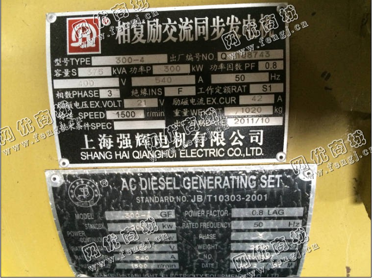 60000.00元(单价)出售300kw上柴发电机机器为生产,上柴发电机是7成新、在位停用的机器,使用过程中无改装、无大修。目前发电机位于浙江台州仓库存放,可以现场验货,有意者电话联系。