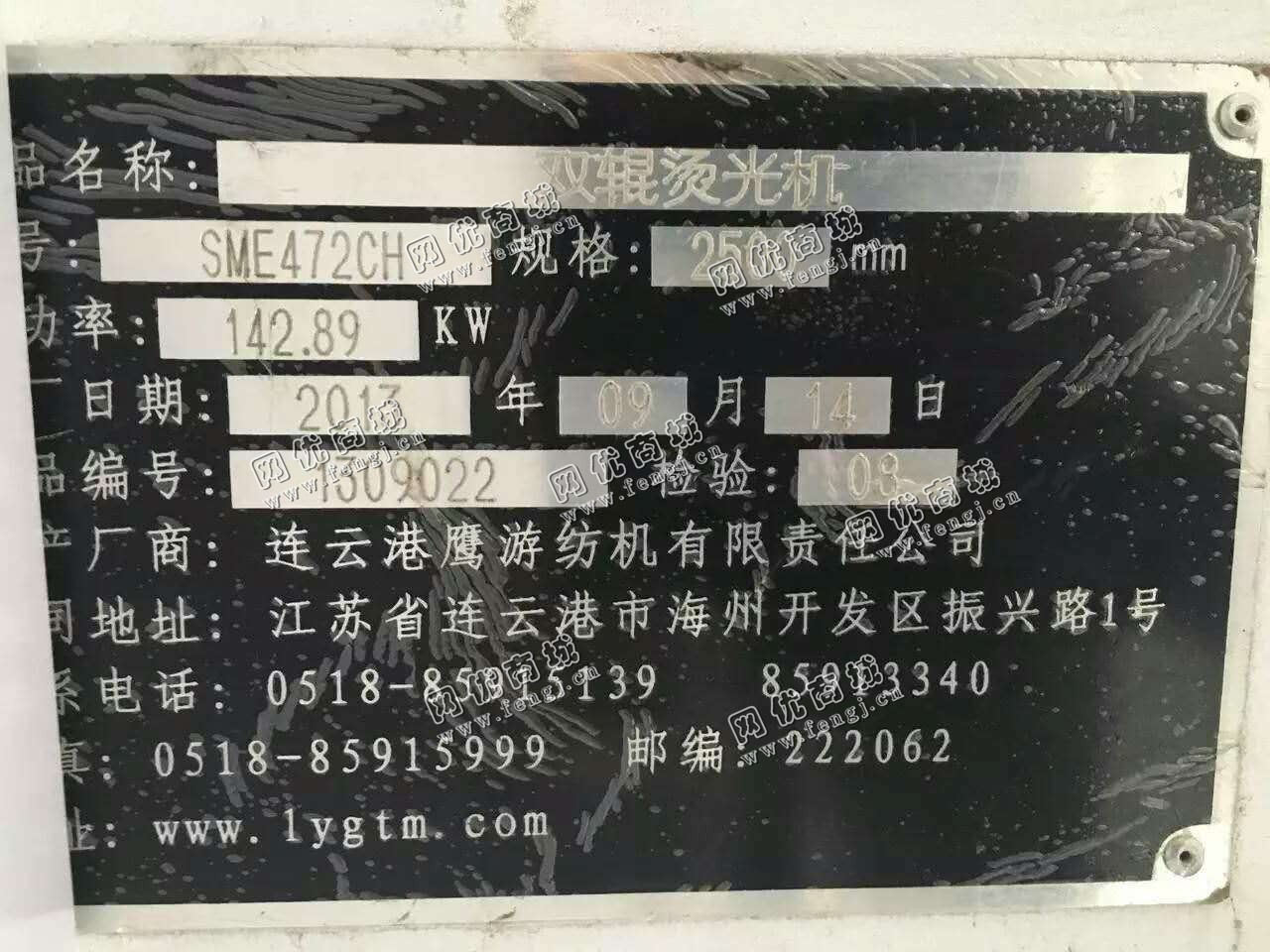 二手设备中介 >> 纺织服装 >> 旧印染整理机械 >> 出售2013年9月鹰游250的415双辊双烫光机