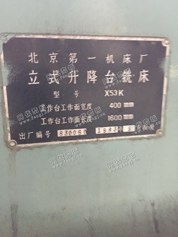 48000.00元(单价)出售二手X53K立式升降台铣床机器为北京一机床厂生产,北京一机立式升降台铣床是7成新、正常使用的机器,使用过程中无改装、无大修。目前立式升降台铣床位于上海嘉定区仓库存放,可以现场验货,有意者电话联系。