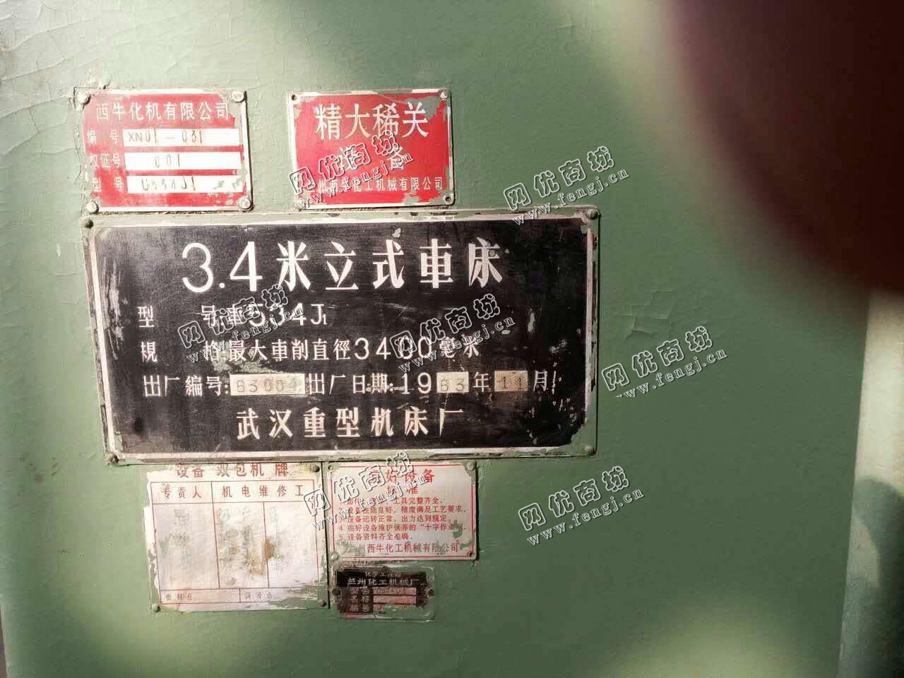 300000.00元(单价)出售1台二手1983武汉重型机床厂3.4米立式车床机器为武汉重型机床厂生产,武汉重型立式车床是7成新、在位停用的机器,使用过程中有改装、有大修。目前立式车床位于甘肃兰州仓库存放,可以现场验货,有意者电话联系。