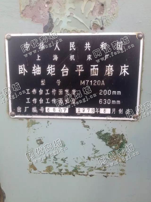 8500.00元(单价)出售二手M7120A卧轴矩台平面磨床机器为生产,磨床是7成新、正常使用的机器,使用过程中无改装、无大修。目前磨床位于山东济南露天存放,可以现场验货,有意者电话联系。