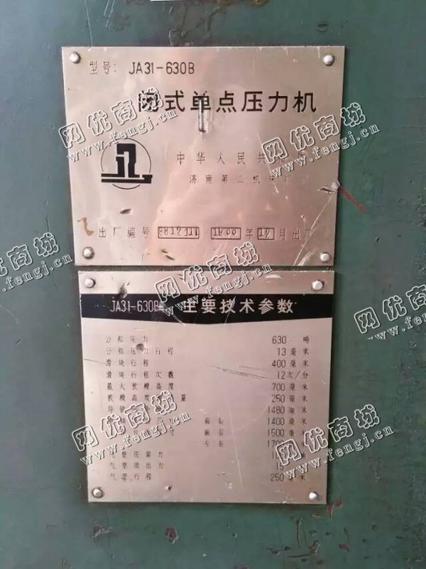 二手设备中介 >> 机床 >> 旧冲床 >> 出售1台二手ja31-630b闭式单点压力机