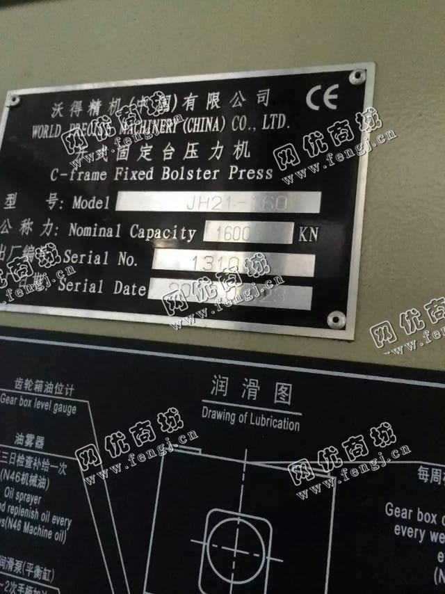 出售1台二手160吨开式固定台式压力机,机器为沃德精机中国有限公司生产,沃德精机开式固定台式压力机是--请选择--、在位停用的机器,使用过程中无改装、无大修。目前开式固定台式压力机位于广东省仓库存放,可以现场验货,,有意者电话联系。