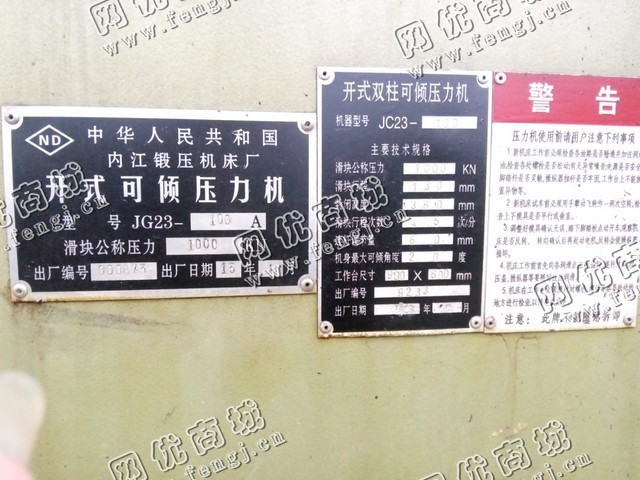 二手设备中介 >> 机床 >> 旧冲床 >> 出售1台二手100吨开式可倾压力机