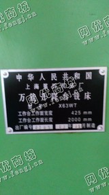 50000元(单价)出售二手上海X63WT升降铣一台,是7成新、正常使用的机器,使用过程中无改装、无大修。位于江苏省仓库存放,有意者电话联系。