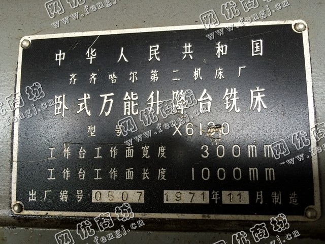 30000元(单价)出售二手齐二产6132卧式升降台铣床,齐齐哈尔二厂铣床是7成新、正常使用的机器,使用过程中无改装、无大修。目前铣床位于浙江省仓库存放,有意者电话联系。