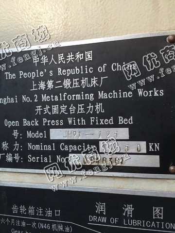 二手设备中介 >> 机床 >> 出售二手上海二锻J21-125开式固定台压力机