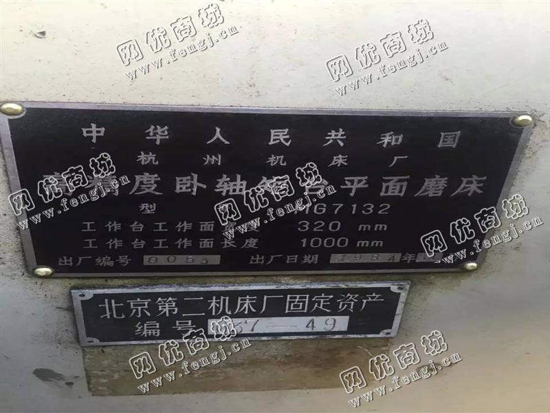 35000元(单价)出售二手杭州机床产MG7132高精度卧轴矩台平面磨床,杭州机床磨床是6成新、正常使用的机器,使用过程中无改装、无大修。目前磨床位于山东省济南市露天存放,有意者电话联系。