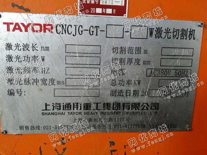 出售一台二手CNCJG-GT-3015-500W的激光切割机,切割范围为30*15m,切割厚度小于等于6mm,上海通用重工集团有限公司,2013年的,有意者请联系
