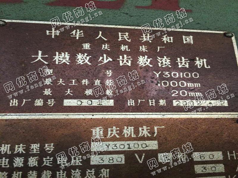 出售一台二手Y30100的大模数少齿数滚齿机,大工件直径为1000mm,大模数为20mm。重庆机床厂生产,2002年2月制造,机子可以正常使用,有需要的可以联系我们。
