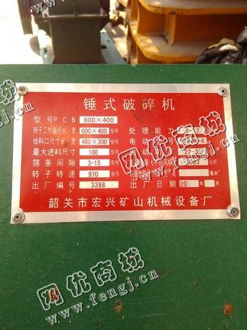 二手设备中介 >> 矿业 >> 旧破碎机 >> 出售一台二手600*400锤式破碎机