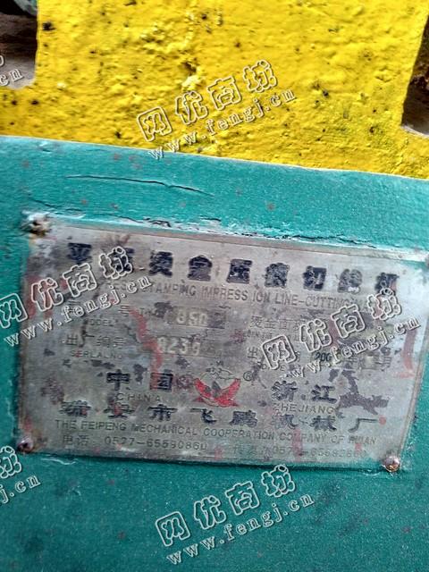 出售一台二手TYQ850平压烫金压痕切线机,价格1万5,2000年浙江瑞安飞鹏机械厂生产,使用过程中无改装、无大修。7成新,目前位于广州仓库存放,可以现场验货,有意者电话联系。