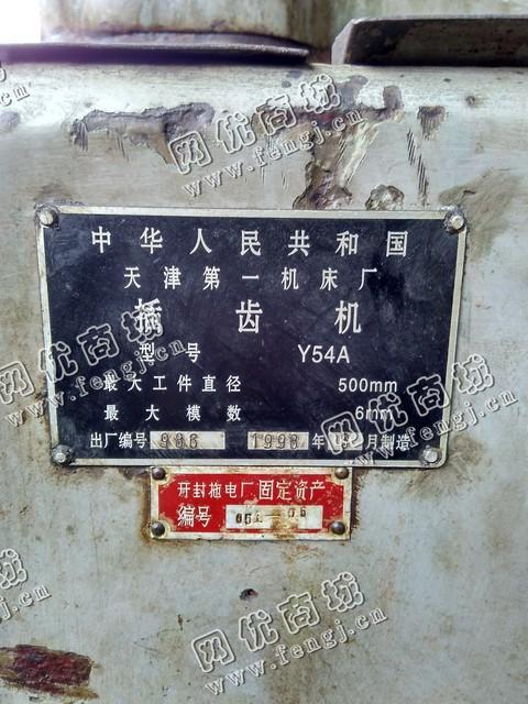 出售一台二手Y54A插齿机,大工件直径500mm,大模数6mm,1998年天津一机床厂生产,价格39800元,使用过程中无改装、无大修。7成新,目前位于佛山仓库存放,可以现场验货,有意者电话联系。