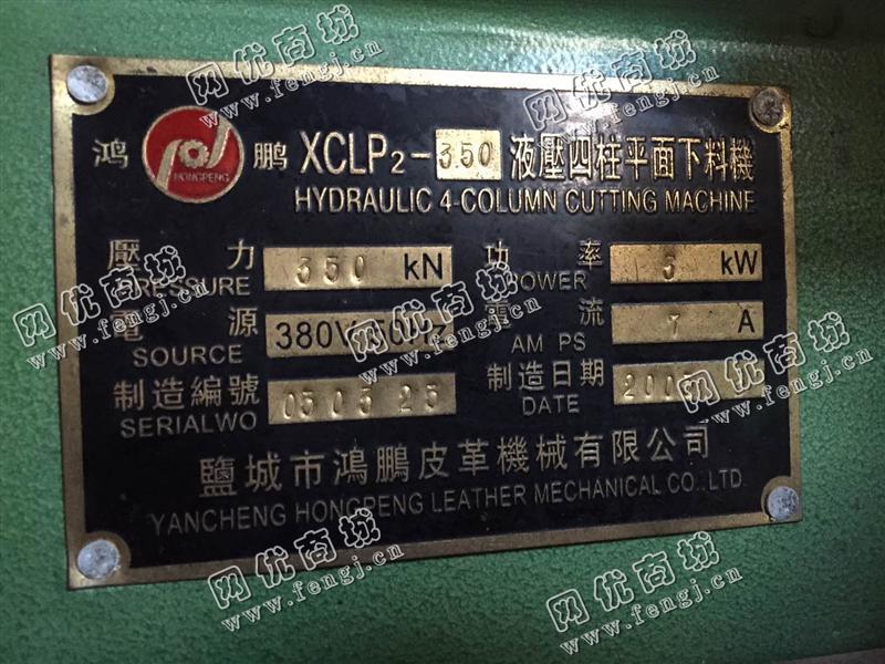 出售一台二手XCLP2-350液压四柱平面下料机,价格2万,2005年盐城市鸿鹏皮革机械有限公司生产,使用过程中无改装、无大修。7成新,目前位于浙江台州存放,可以现场试车,有意者电话联系。