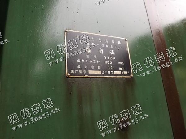 出售一台二手Y58A插齿机,大工件直径800mm,大模数12mm,2000年天津一机床总厂生产,价格16万,使用过程中无改装、无大修。7成新,目前位于浙江台州仓库存放,可以现场验货,有意者电话联系。