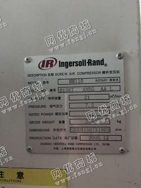 出售一台二手MM110螺杆空压机,2005年上海英格索兰压缩机有限公司生产,价格22万,使用过程中无改装,无大修,7成新,目前位于浙江台州仓库存放,可以现场验货,有意者电话联系。
