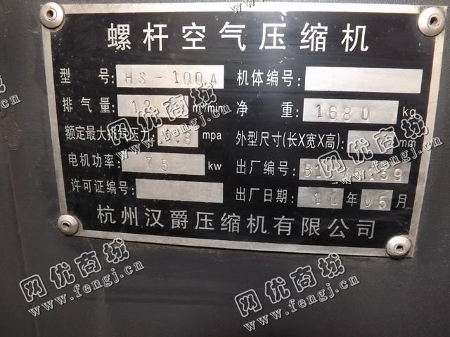 二手设备中介 >> 通用机械 >> 旧压缩机 >> 出售一台二手HS-100A螺杆空气压缩机