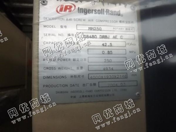 出售一台二手MM250螺杆空压机,2004年上海英格索兰压缩机有限公司生产,价格15万,使用过程中无改装,无大修,7成新,目前位于浙江台州仓库存放,可以现场验货,有意者电话联系。