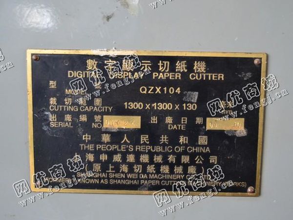 出售一台二手QZX104数字显示切纸机,裁切范围1300*1300*130mm,2001年上海申威达机械有限公司生产,价格1.6万,使用过程中无改装,无大修,7成新,目前位于河北沧州仓库存放,可以现场验货,有意者电话联系。