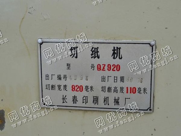 二手设备中介 >> 印刷造纸 >> 出售一台二手QZ920切纸机