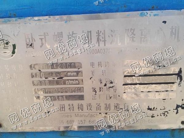 出售一台二手LW500*2000卧式螺旋卸料沉降离心机,2003年浙江青田特种设备制造有限责任公司生产,价格4万,使用过程中无改装,无大修,7成新,目前位于山东济宁露天存放,有意者可电话联系。