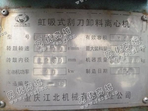 出售一台二手GKH1250虹吸式刮*卸料离心机,2007年重庆江北机械有限责任公司生产,价格14.5万,使用过程中无改装,无大修,7成新,目前位于山东济宁露天存放,有意者可电话联系。