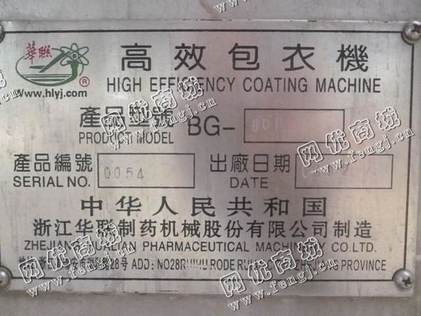 出售一台二手BG-80D高效包衣机,2003年浙江华联制药机械股份有限公司制造生产,价格4万,使用过程中无改装,无大修,7成新,目前位于山东济宁露天存放,有意者可电话联系。