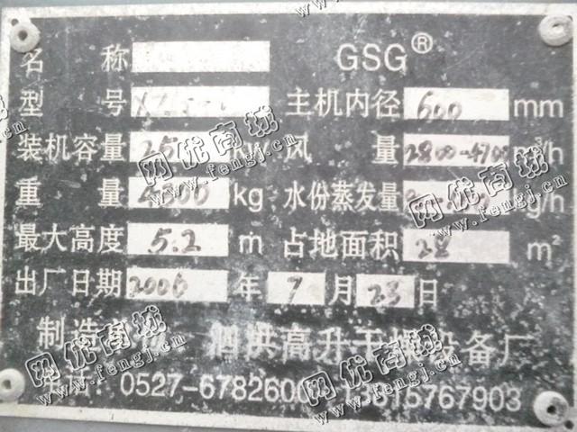 出售一台二手GSG闪蒸干燥机,主机内径600mm,2006年泗洪高升干燥设备厂生产,价格4.9万,使用过程中无改装,无大修,7成新,目前位于山东济宁露天存放,有意者可电话联系。