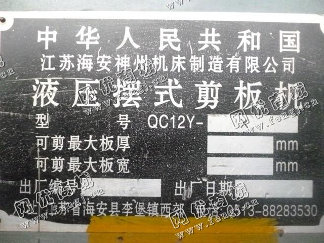 出售一台二手QC12Y-10*3200液压摆式剪板机,可剪大板厚10mm,可剪大板宽3200mm,2003年江苏海*州机床制造有限公司生产,价格4万,使用过程中无改装,无大修,7成新,目前位于山东临沂仓库存放,有意者可电话联系。