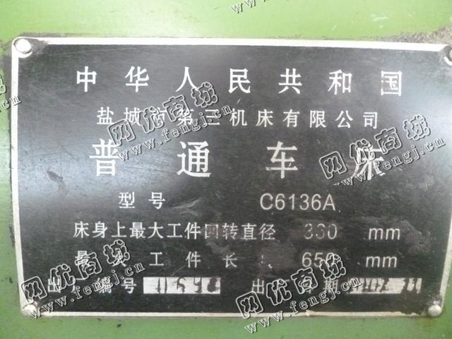 出售一台二手C6136A普通车床,床身上大工件回转直径330mm,大工件长度650mm,2002年盐城市第三机床有限公司生产,价格4000元,使用过程中无改装,无大修,7成新,目前位于山东临沂仓库存放,有意者可电话联系。