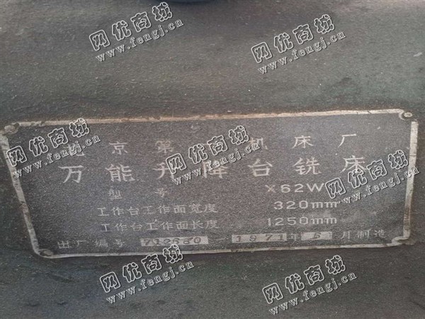 出售一台二手X62W升降台铣床,工作台工作面宽度320mm,工作台工作面长度1250mm,1971年北京一机床厂生产,价格2.3万,使用过程中无改装、无大修、7成新,目前位于广东汕头仓库存放,可以现场验货,有意者电话联系。