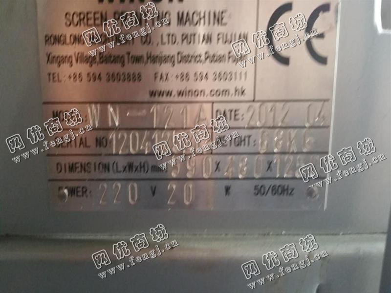 出售1台二手荣龙WN-121A移印机,荣龙精密机械有限公司2012年产,8成新,售价2500元/台,使用过程中无改装,无大修,存放于天津仓库中,在位停用,欢迎现场验货,可试机,有意电联!