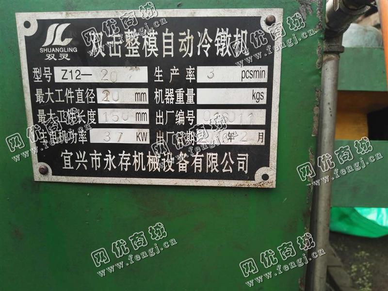 出售1台二手Z12一20双击整模自动冷镦机,大工件直径:20mm,大工件长度:150mm,宜兴市永存机械设备有限公司2016年产,九成新,售价17.5万/台,使用过程中无改装,无大修,存放河北廊坊仓库中,在位停用,欢迎现场验货,可试机,有意电联!