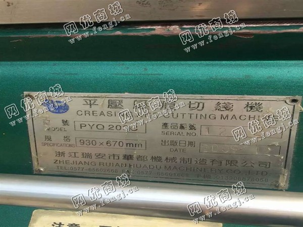 出售一台二手瑞安华都PYQ203C对开模切机,2010年浙江瑞安市华都机械制造有限公司制造生产,价格16000元,使用过程中无改装,无大修,七成新,目前位于北京大兴区仓库存放,可以现场验货,有意者电话联系。