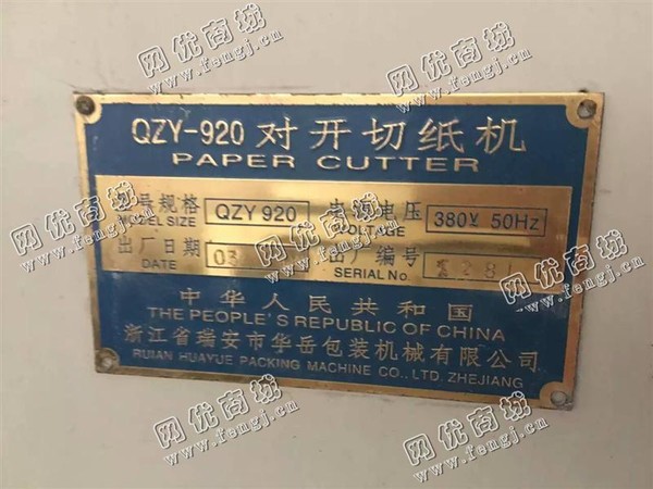 二手设备中介 >> 印刷造纸 >> 出售一台二手03年华岳920对开切纸机